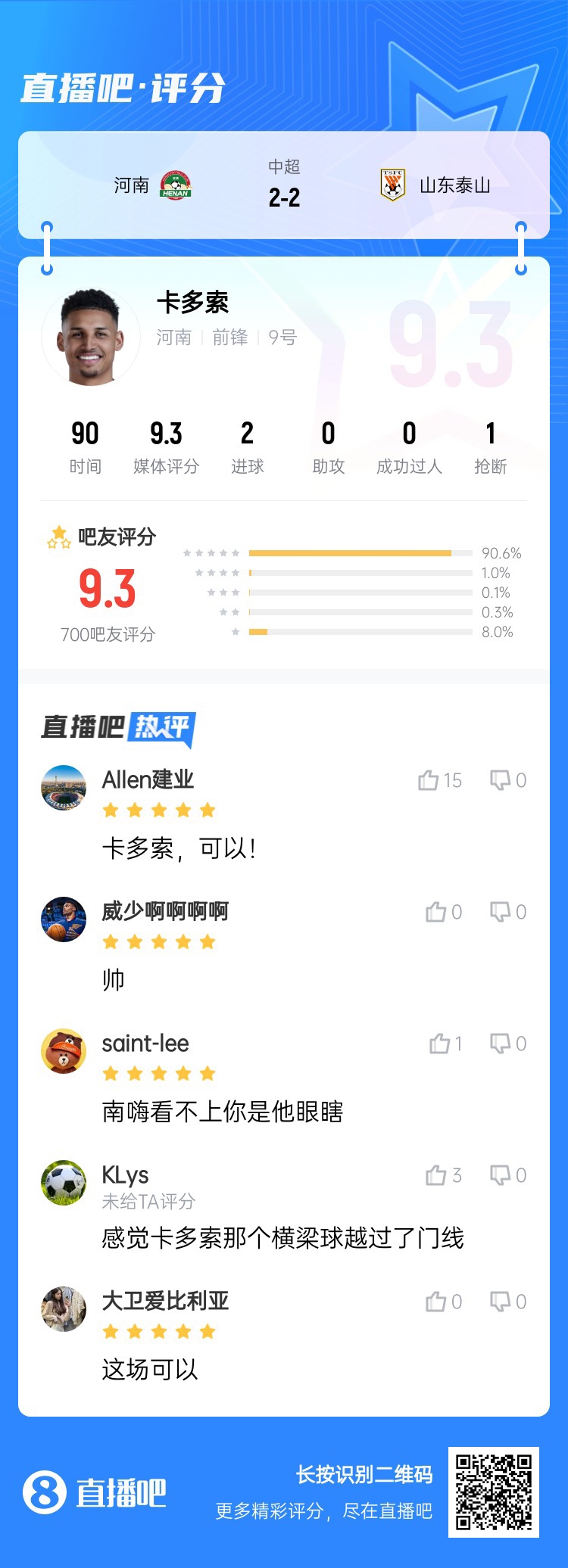 【】中超第12轮最佳球员:帽子戏法助泰山逆转!卡扎首当选