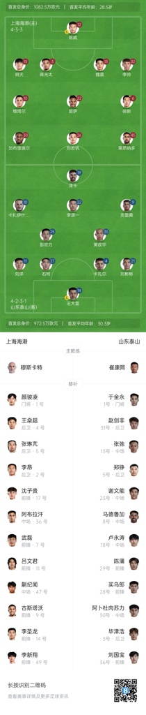 05月17日讯 北京时间今晚20点,中超第13轮,上海海港vs山东泰山,赛前首发阵容公布。